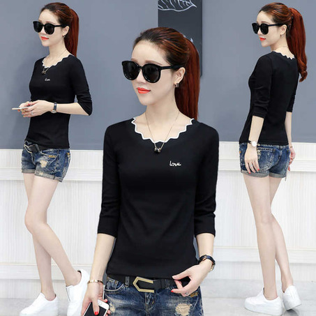 条纹T恤秋装新款长袖修身百搭T恤打底衫女体恤